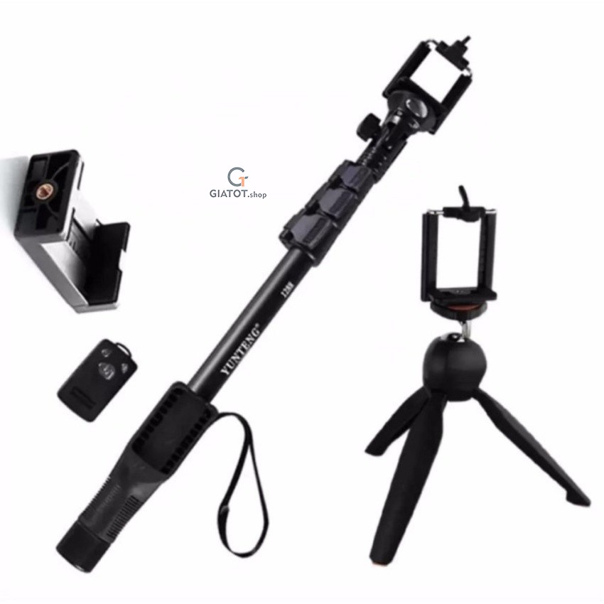 Gậy yunteng: Gậy chụp hình và Tripod Yunteng được làm từ kim loại không gỉ, rất chắc chắn, độ bền cao, có thể chịu tải lên đến 2kg - Kích thước: min: 42,5cm, max: 125 cm