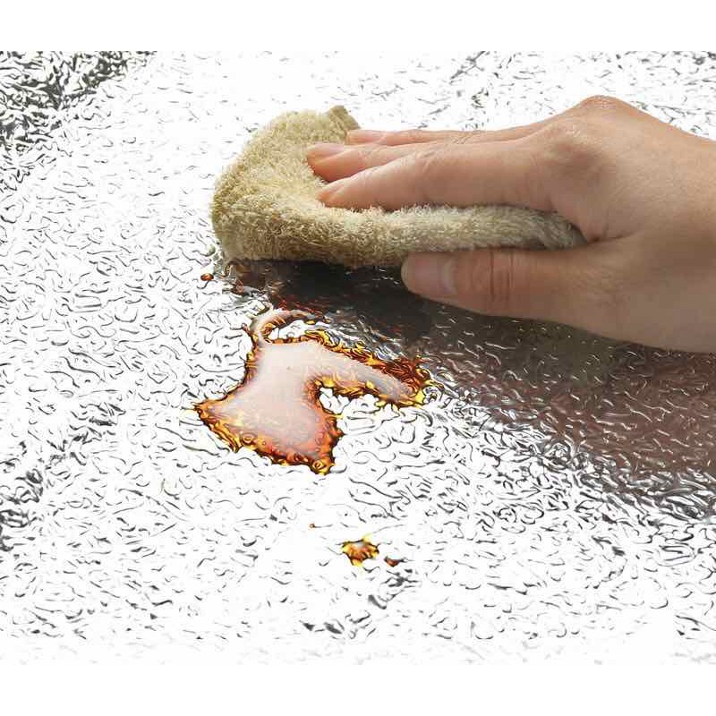 Giấy Bạc Dán Nhà Bếp giúp chúng ta lau chùi dễ dàng vì bề mặt tráng bạc dễ lau ko bám.Chất liệu tráng nhôm cách nhiệt, không thấm nước, dễ dàng lau chùi, bền màu, không độc hại.