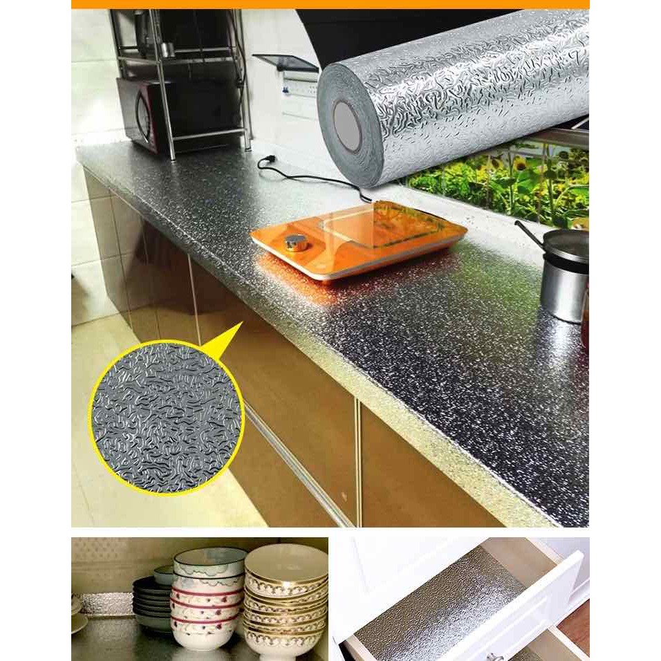 Giấy Bạc Dán Nhà Bếp tông màu sạch sẽ, giúp làm mới không gian sống của bạn hiệu quả, dễ dàng lau chùi khi bị bám dính dầu mỡ. Chất liệu tráng nhôm cách nhiệt, không bám dính dầu mỡ, không thấm nước, bền màu, không độc hại. Dùng dán tường bếp, dán lót mặt bếp, dán lót tủ, dán tường...Giấy có sẵn keo chỉ cần lột ra và dán, có thể tự dán dễ dàng. Dán được trên nhiều loại bề mặt vật liệu bằng phẳng: tường vôi bằng phẳng, gỗ, ván, kính, đá thạch anh…