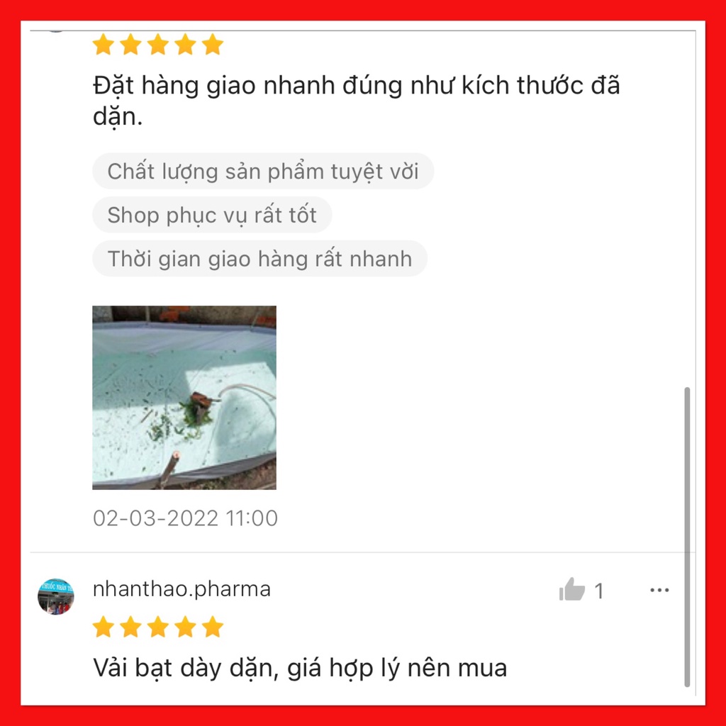 Nhà cửa & Đời sống > Làm vườn > Trang trí vườn || [ LOẠI DÀY ] BỂ BẠT , TRÁNG BẠT , BỂ CÁ, BỂ BƠI , Nhận May Theo Kich Thước Yêu CầuCòn hàng