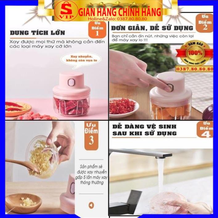 [ LOẠI ĐẸP-BẢN MỚI ] Máy xay tỏi ớt, xay thịt, củ quả đa năng/ Máy xay mini cầm tay xay thịt cá tiêu sạc điện 250ml