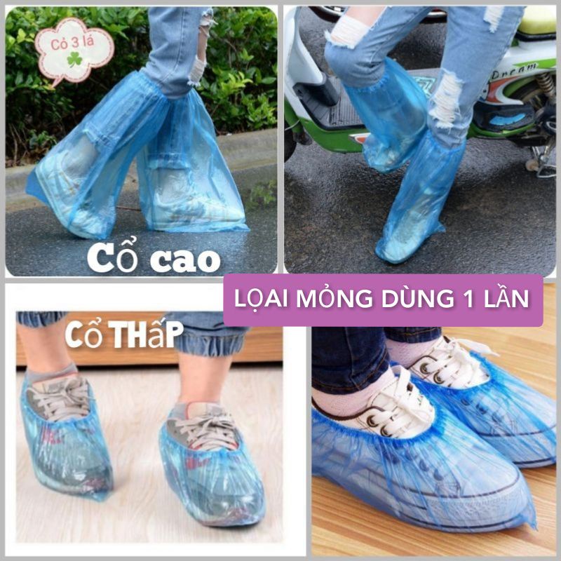 (LỌAI MỏNG DÙNG 1 LẦN- xem video) 1 đôi Ủng nilon đi mưa tránh ướt giày dép,chân