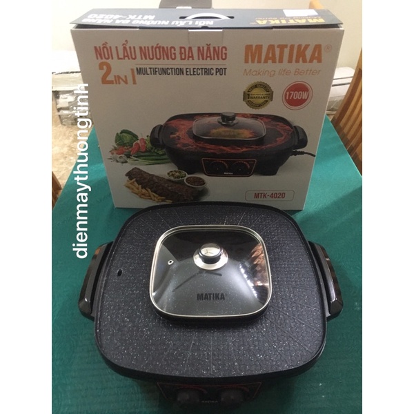 Nồi lẩu nướng kết hợp cao cấp Matika MTK-4020 hoạt động với công suất tối đa lên đến 1700W giúp món ăn được nướng hay nhiệt độ nấu lẩu nhanh hơn mà vẫn đảm bảo được độ chín thơm ngon của thức ăn. Hai núm xoay điều chỉnh nhiều mức nhiệt độ khác nhau cho quá trình hoạt động của bếp giúp bạn có thể linh động chọn được chế độ thích hợp với từng món ăn và nhu cầu sử dụng. Matika MTK-4020 có khay nướng bằng thép không gỉ được phủ lớp chống dính