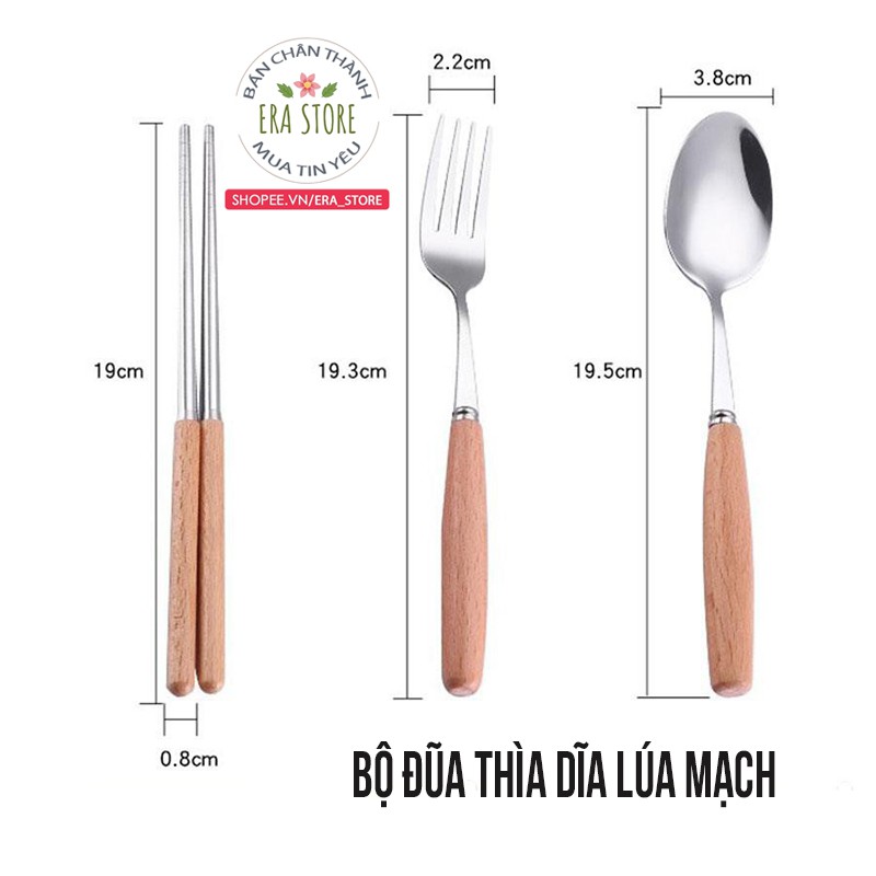 [LOẠI TỐT] Bộ 3 dụng cụ đũa thìa dĩa inox không gỉ tay gỗ văn phòng tiện lợi dễ dàng vệ sinh an toàn cho sức khỏe