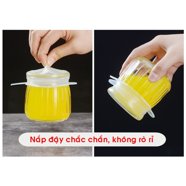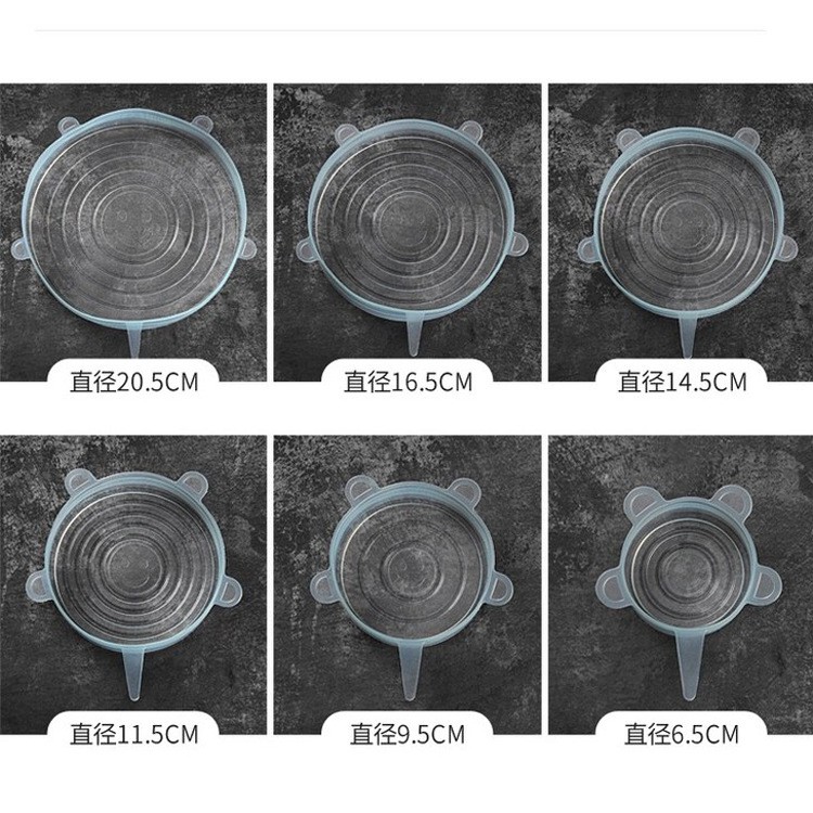 - Bộ 6 nắp đậy hình tròn, siêu co giãn, giúp bạn che đậy và bảo quản nhiều loại thực phẩm khác nhau.
