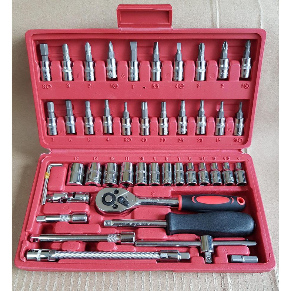 Nhà cửa & Đời sống > Dụng cụ & Thiết bị tiện ích > Dụng cụ > Khác || [LOẠI TỐT] Bộ dụng cụ mở bu lông ốc vít, 46 chi tiếc,bộ dụng cụ sửa chữa ô tô xe máy, bộ dụng cụ đa năng 46 chi tiếtCòn hàng