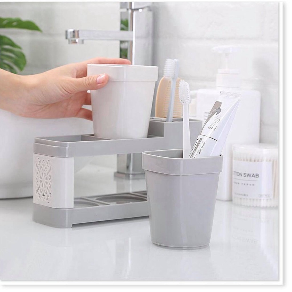 [ LOẠI TỐT] KỆ ĐỰNG BÀN CHẢI KEM ĐÁNH RĂNG KÈM 2 LY XINH XẮN SIÊU TIỆN LỢI