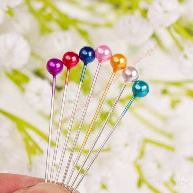 🔺Đầu ghim tròn hạt cuờm tráng nhũ nhiều màu sắc bắt mắt.