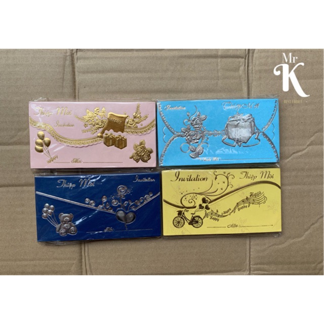 Lốc 100 thiệp mời bao gồm 1 thiệp + 1 giấy mời.Chất liệu giấy tốt,in rõ nét,màu sắc tươi sáng.