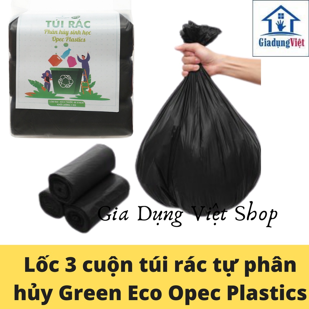 Giới thiệu Lốc 3 Cuộn 1 Kg Túi Đựng Rác Sinh Học Tự Hủy Eco Green Opec Platics Cao Cấp