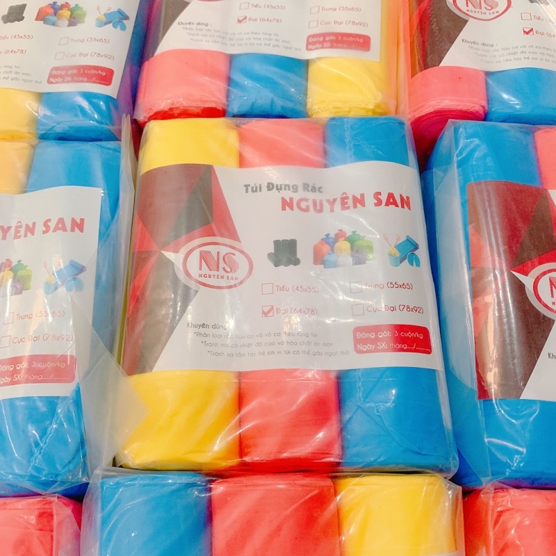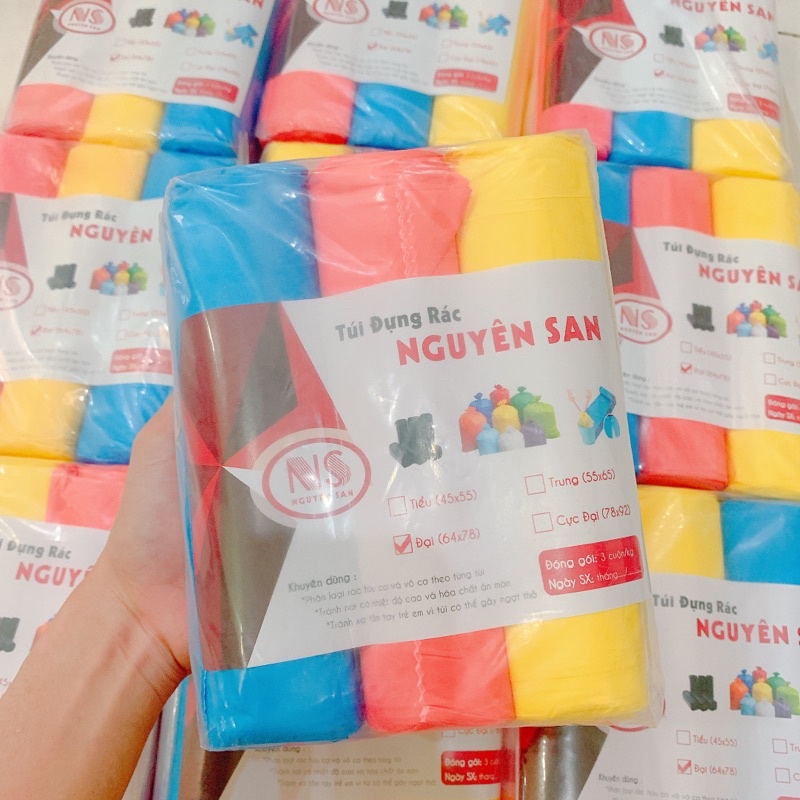 Nhà cửa & Đời sống > Dụng cụ chăm sóc nhà cửa > Túi nilon & túi rác || Lốc 3 Cuộn Túi Rác 3 Màu Size Đại (64x78)Còn hàng