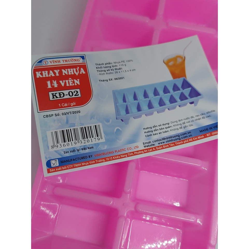 Khay đá Hình 14 Viên Chữ Nhật - Vĩnh Trường là sản phẩm khay đá sạch là được làm từ nhựa PE cao cấp, giúp bạn có thể làm đá viên, làm thạch, đổ socola nhanh chóng, tiện lợi. Đặc điểm nổi bật của sản phẩm