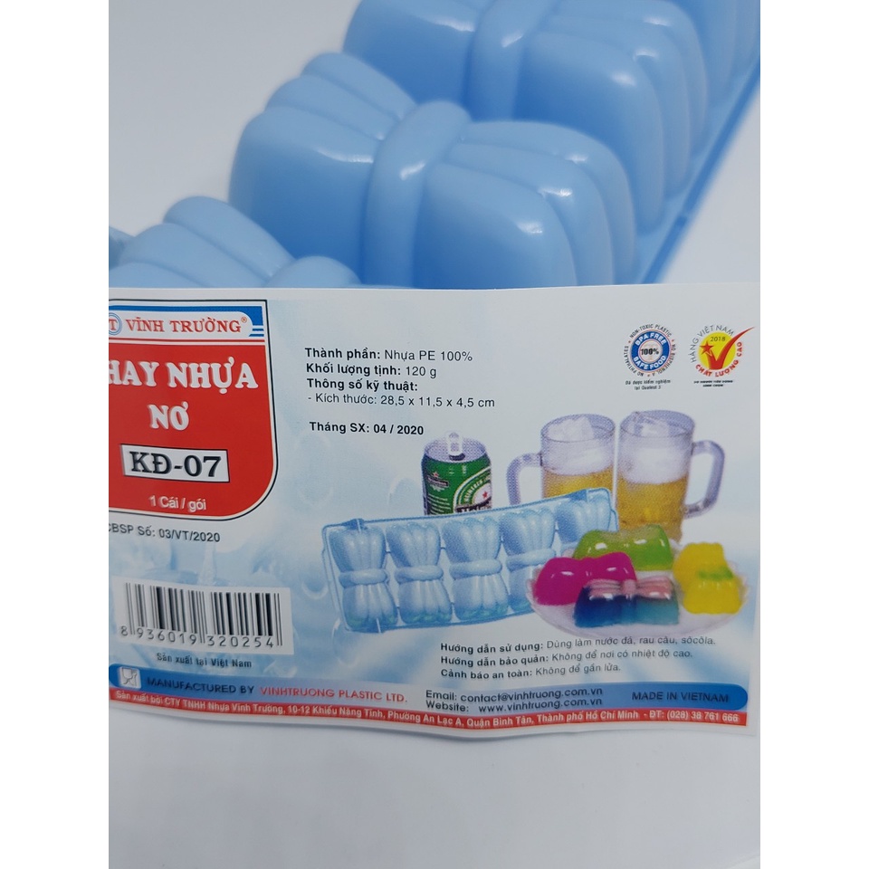 Lốc 5 Khay Đá - Chữ Nhật Nơ Dk 07 - VTKhay đá Hình Lốc 5 Khay Đá - Chữ Nhật Nơ Dk 07 - VT - Vĩnh Trường là sản phẩm khay đá sạch là được làm từ nhựa PE cao cấp, giúp bạn có thể làm đá viên, làm thạch, đổ socola nhanh chóng, tiện lợi. Đặc điểm nổi bật của sản phẩm