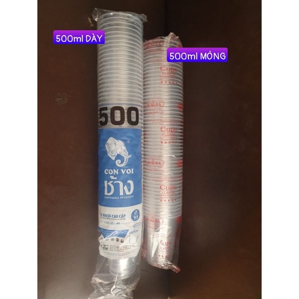 Lốc 50 ly nhựa PP 500ml TRƠN, tuỳ chọn có nắp hoặc không