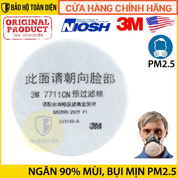 Tấm lọc bụi mịn, khói và hơi hữu cơ 3M chính hãng 3M 7711 dùng với mặt nạ loại 1 phin lọc 3M 3200