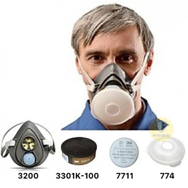Kết hợp: Nắp giữ tấm lọc 3M 774 và Mặt nạ phòng độc 3M 3100/3200.