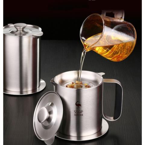 Lọc Dầu Ăn, Ca Lọc Dầu Ăn 1.5L Inox 304 Lọc Bỏ Cặn Dầu Ăn Có Khay Lọc Hiệu Quả, Bình Đựng Dầu Thừa Tiện Dụng