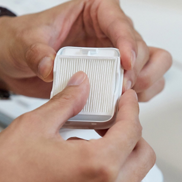 Bộ lọc HEPA thế hệ 1 cho khẩu trang lọc khí LG PuriCare gồm 2 tấm lọcTấm lọc HEPA loại bỏ bụi mịn PM2.5 hiệu quả tới 93,8%. Loại bỏ 99,7% virus, 99% vi khuẩn, 99,1% phấn hoa, các chất gây dị ứng khói bụi và các chất ô nhiễm khác, cho phép bạn tận hưởng không khí trong lành và sạch sẽ nhất có thể.