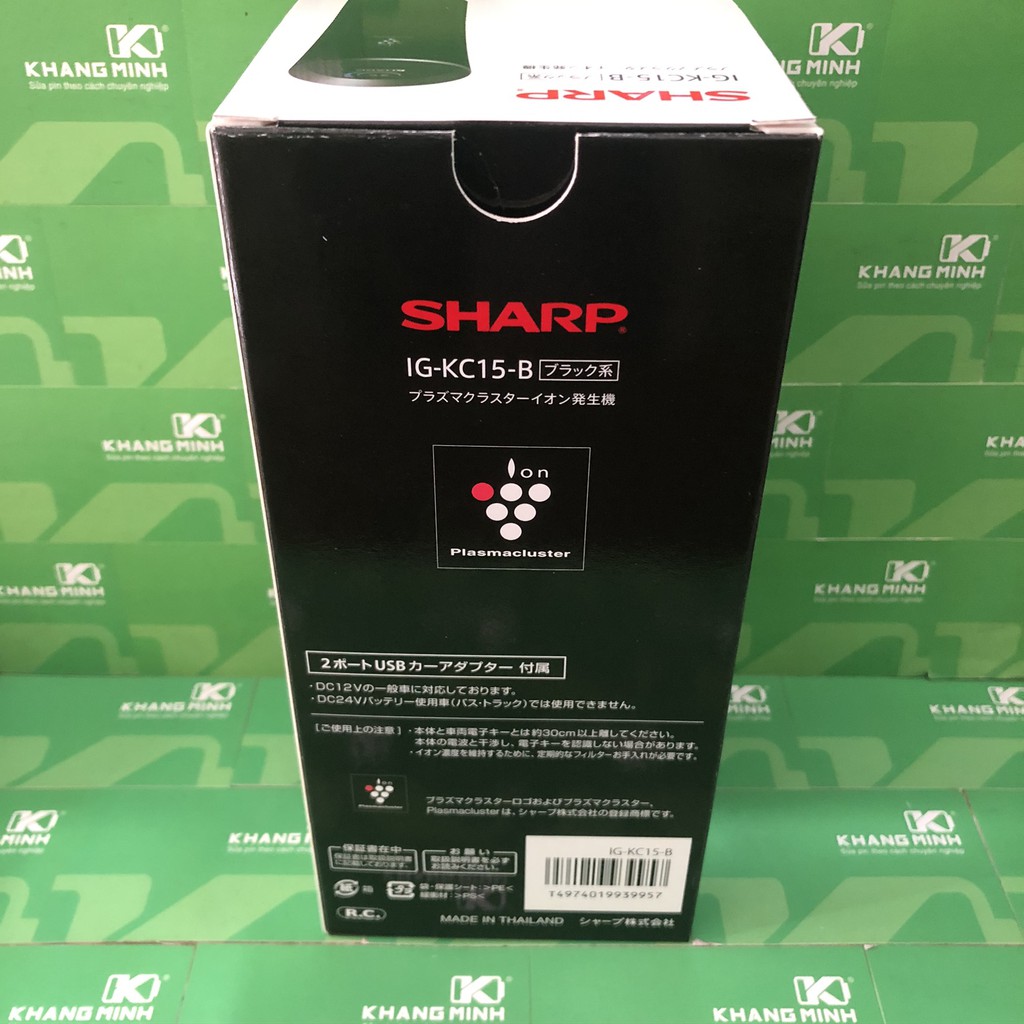Lọc không khí ô tô Sharp IG-KC15-B, nội địa Nhật Bản (Only Use Japan), công nghệ Plasma Cluster lọc không khí bằng các Ion âm, mật độ 25.000 ion/cm3, giúp khử mùi nhanh chóng và giữ cho không khí trong xe ô tô luôn sạch sẽ, tạo cảm giác thoải mái. Làm việc hiệu quả cho xe từ 4-7 chõ hoặc diện tích 3,6M2Thông số từ nhà sản xuất