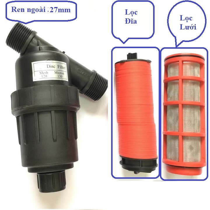 Lọc lưới phi 27mm, phi 34mmLọc màng hệ thống tưới nhỏ giọt 27mm