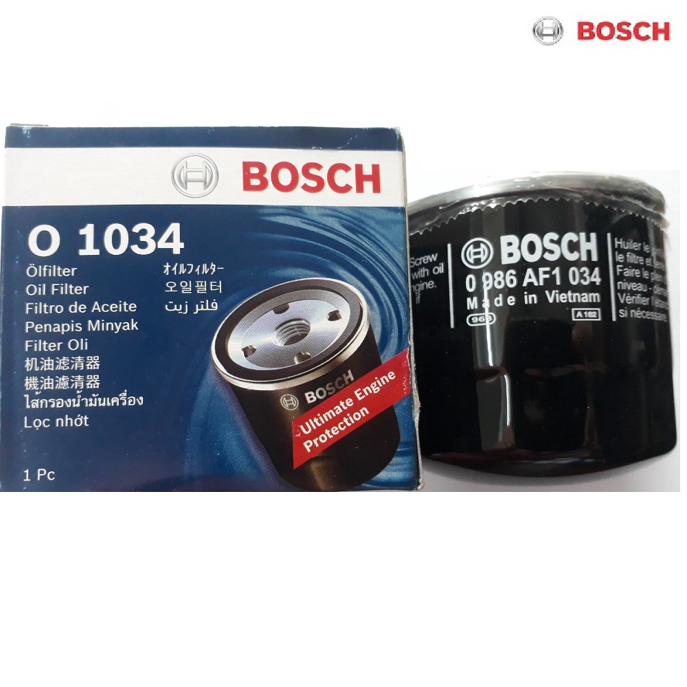 Giới thiệu Lọc nhớt (dầu) động cơ BOSCH O 1034 (Đen) dành cho FORD, KIA, HYUNDAI, HONDA, MITSUBISHI theo đời xe khác nhau.