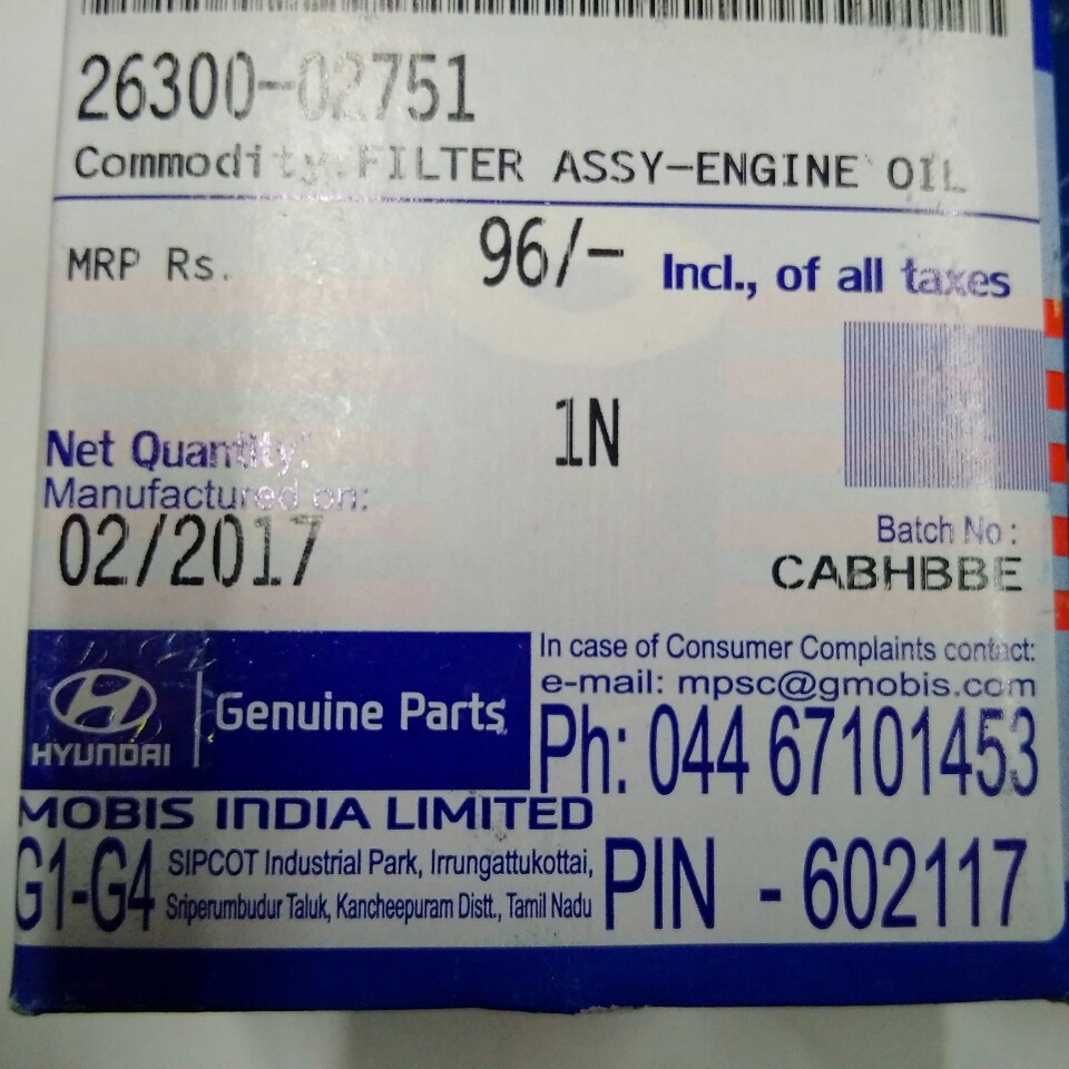 Lọc nhớt động cơ Hyundai i10 / Getz xịnThời gian thay lọc nhớt trung bình là 10.000km cho xe vận hành ổn định nhất, sản phẩm xuất xứ Mobis Ấn Độ