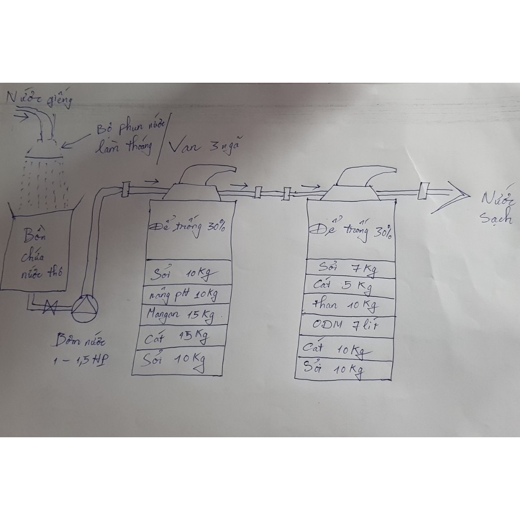 Quý khách mua về chỉ đổ vật liệu lọc và và kết nối đường ống là xong và cho lọc nước được.Bộ lọc nước đầy đủ thiết bị và vật liệu lọc bao gồm những vật tư sau: