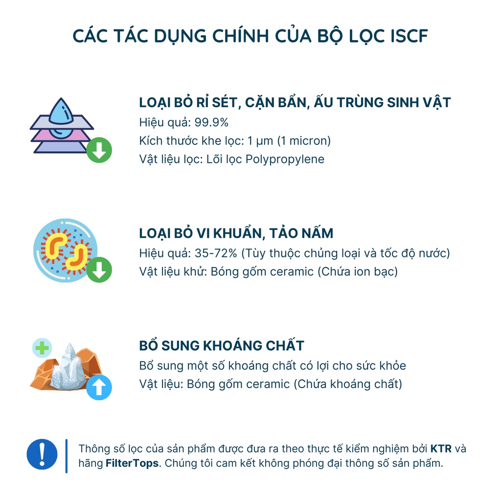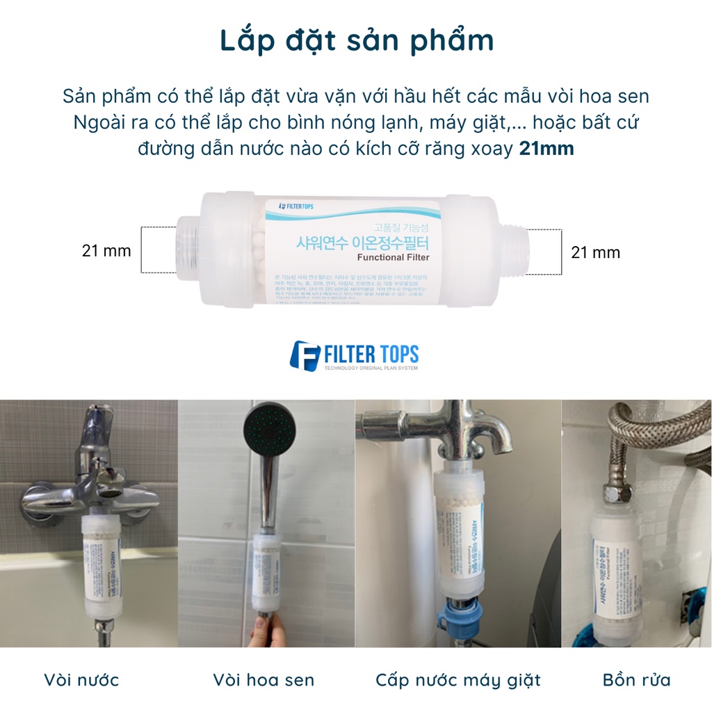 Vui lòng đọc kỹ miêu tả bên dưới trước khi mua sản phẩmSản phẩm bộ lọc nước ISCF gắn vòi hoa sen của hãng Filter Tops