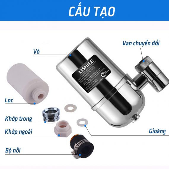 Bộ Lọc Nước Tại Vòi 7 Lớp Lọc Lishile Chính Hãng Cao cấp Đầu Lọc Nước Siêu Sạch Dễ Lắp ĐặtLọc nước tại vòi Lishile với khả năng lọc trực tiếp tại vòi nước sẽ giúp cho các gia đình hoặc các bạn sinh viên rất nhiều. Hiện nay tình trạng nguồn nước bị ô nhiễm nhu cầu đỏi hỏi mỗi gia đình cần có một chiếc máy lọc nước, tuy nhiên với các hộ gia đình nhỏ, chật hẹp cùng chi phí sinh hoạt thấp, hoặc các bạn sinh viên đi thuê nhà hay chuyển địa chỉ thường xuyên thì việc sắm một chiếc máy lọc nước cồng kềnh lại rất khó khăn bất tiện. Trong những trường hợp như vậy, một chiếc lọc nước nhỏ gọn, có thể lọc trực tiếp tại vòi nước lại dễ lắp đặt sẽ rất tiện lợi. Lọc nước tại vòi Lishile dễ dàng tháo lắp và di chuyển cũng như đảm bảo chất lượng tuyệt đối.