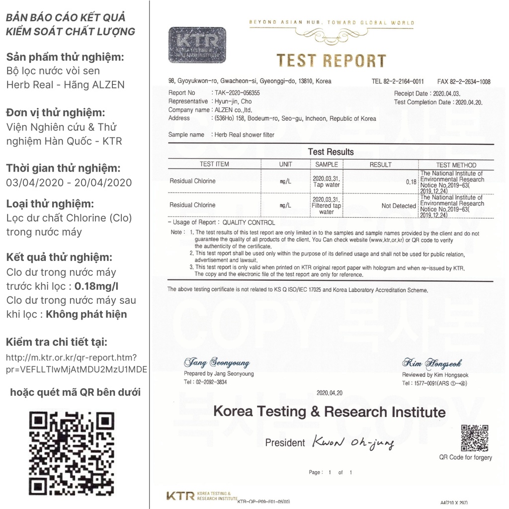 Tên sản phẩm : Bộ lọc nước thảo mộc gắn vòi hoa sen Herb Real
