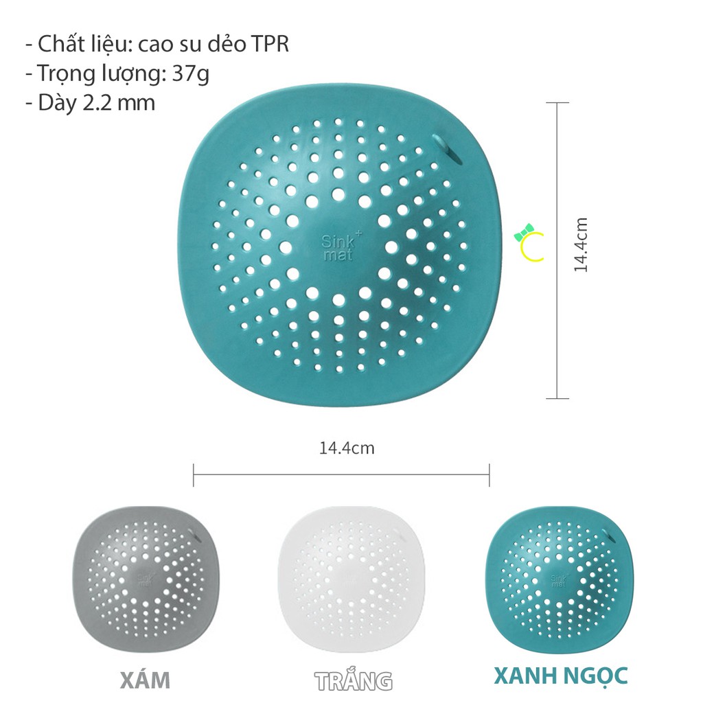 - Chất liệu: lưới lọc bằng cao su dẻo