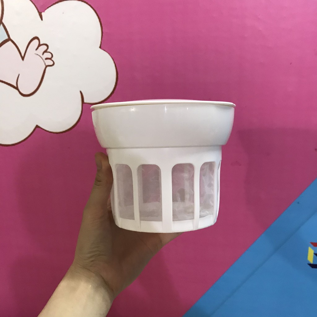 Bộ lọc sữa chua hy lạpBạn muốn có 1 cốc sữa chua hy lạp ngon đặc quánh như phomai thì bí quyết làm món sữa chua hy lạp là chiếc cốc lọc sữa chua để tách đạm whey. NHư các bạn cũng biết chính đạm whey làm cho sữa chua mình làm không đặc quánh được do vậy ta phải lọc hết nước đạm này đi nha :)