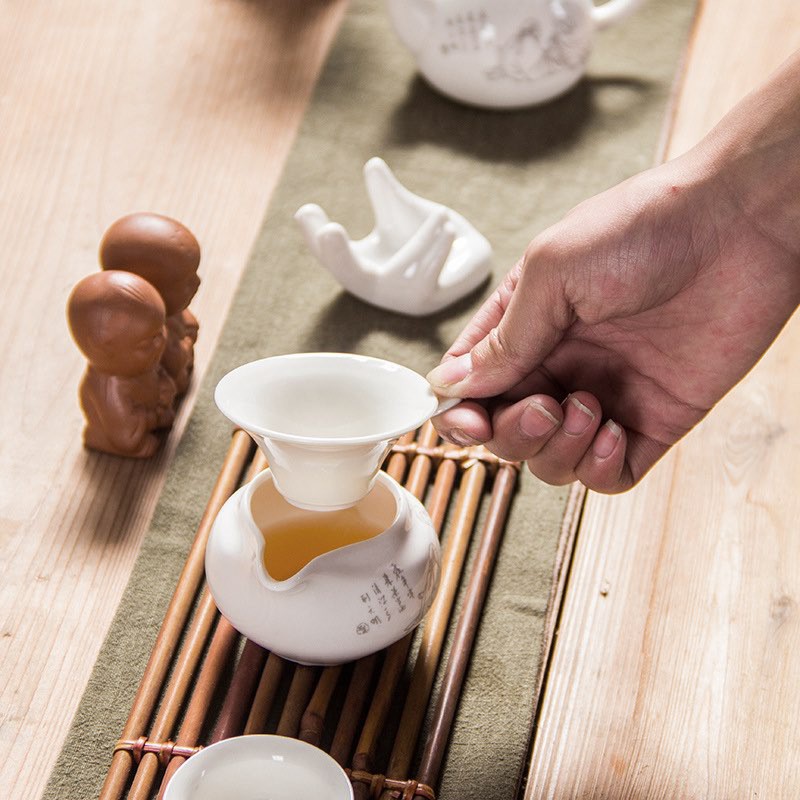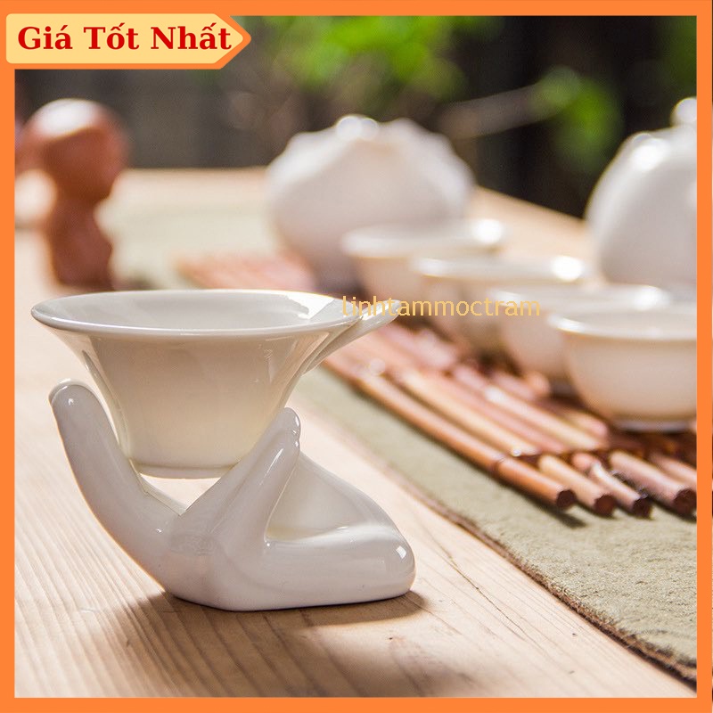 Tay lọc trà sứ phễu lọc trà phụ kiện trà đạo dụng cụ lọc trà