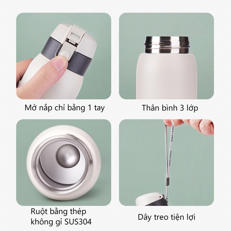 - Bình có thiết kế nhỏ gọn, hiện đại, có dây xách dễ dàng cho việc mang theo.