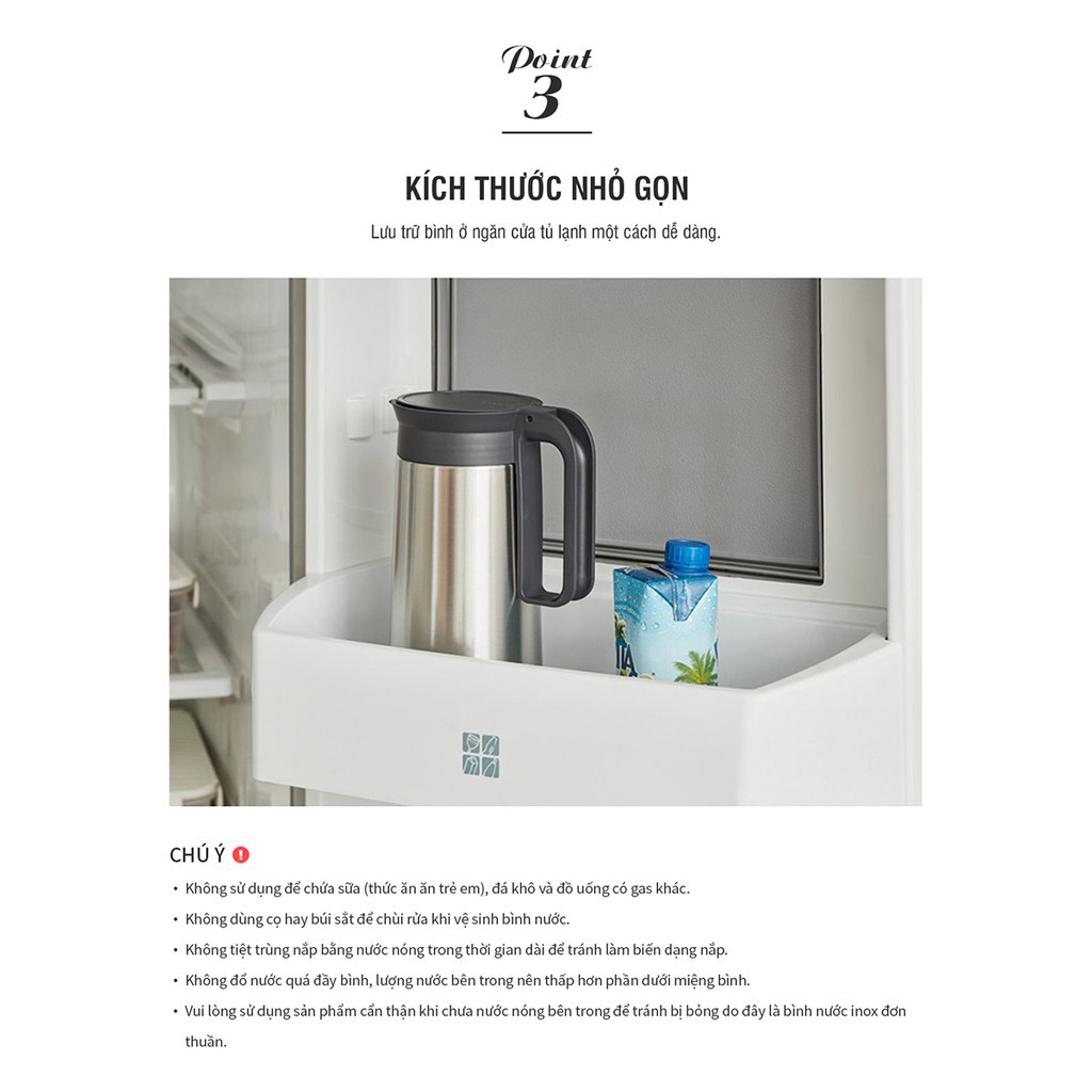 - Vui lòng sử dụng sản phẩm cẩn thận khi chưa nước nóng bên trong để tránh bị bỏng do đây là bình nước inox đơn thuần, không cách nhiệt.