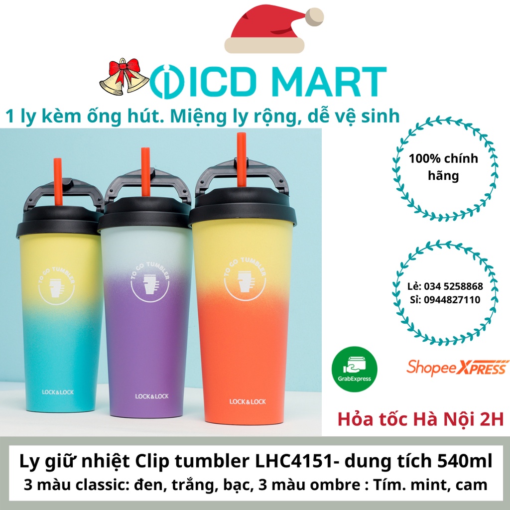 Ly Giữ Nhiệt Lock&Lock Clip Tumbler 540ml LHC4151 (5 màu)❌ Lưu ý: Nắp là dạng kẹp nên ko phù hợp để bình nằm ngang, có thể bị rò nước. SP chỉ phù hợp cầm tay và để bàn.
