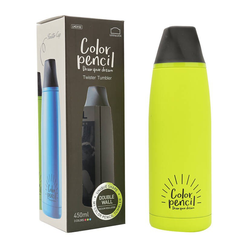 - Bình giữ nhiệt Lock&Lock Twister Tumbler LHC4152BLU 450ml thiết kế kiểu dáng tinh tế, đẹp mắt với hình cây bút chì nhiều màu sắc sinh động, nổi bật.