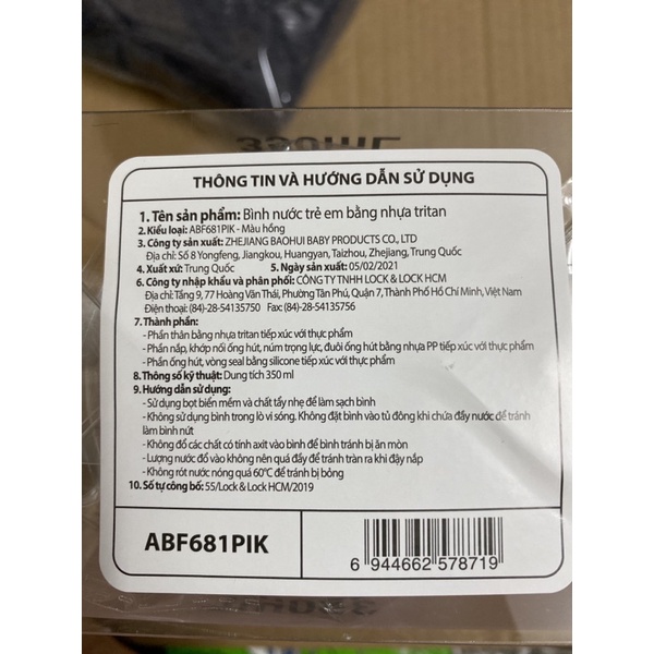 Giới thiệu [LOCK&LOCK]BÌNH NƯỚC CÓ ỐNG HÚT NHỰA TRITAN CỰC AN TOÀN - ABF681PIK-ABF683YEL( 350ML)