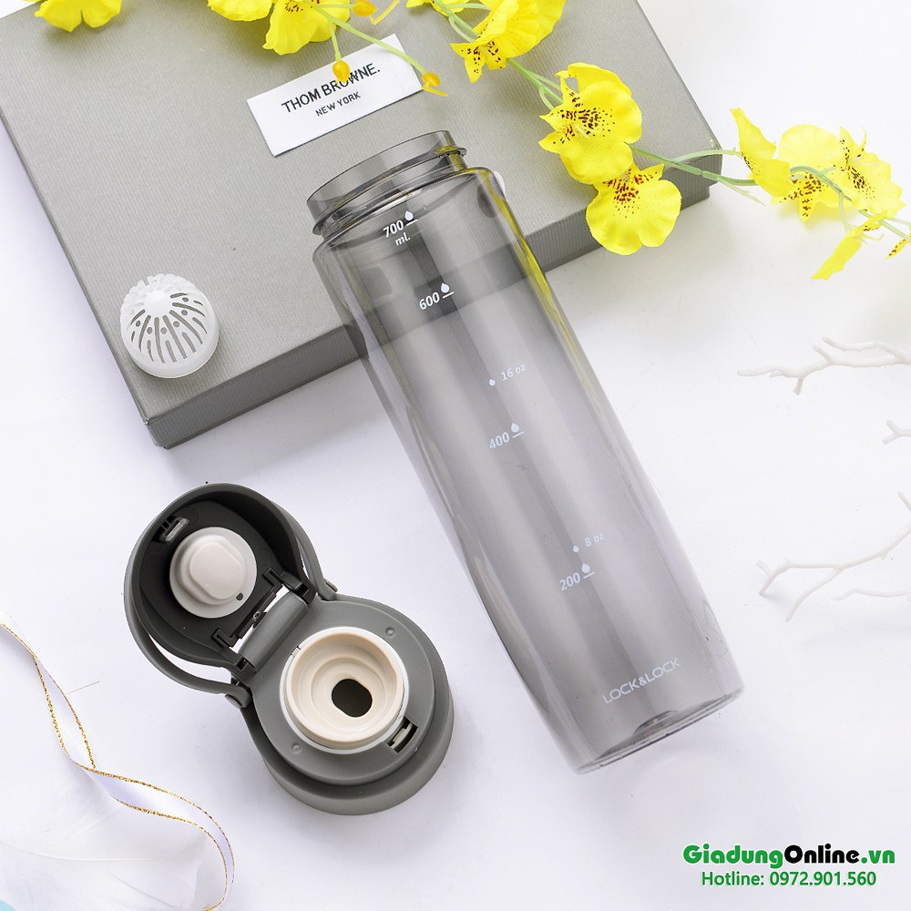 Giới thiệu [Lock&Lock] Bình Nước Nhựa Tritan One Touch Sport ABF763GRY 750ml (Màu xám)