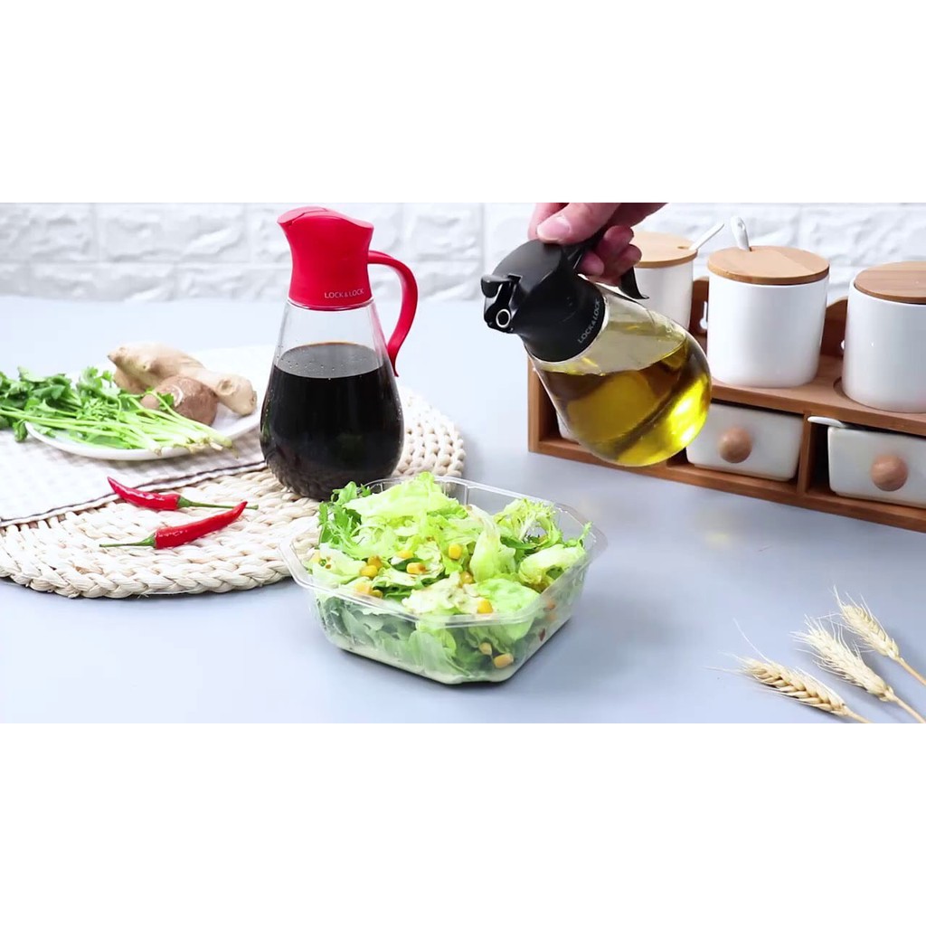 [LOCK&LOCK] Bình rót dầu CKO101 thuỷ tinh 550ml đựng gia vị: dầu, giấm, nước tương, nước mắm... cưc kì đẹp