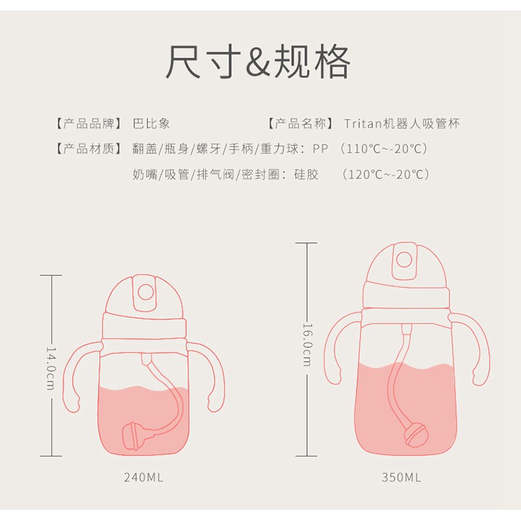 - Bình được trang bị thêm ống hút giúp con bé dễ dàng sử dụng