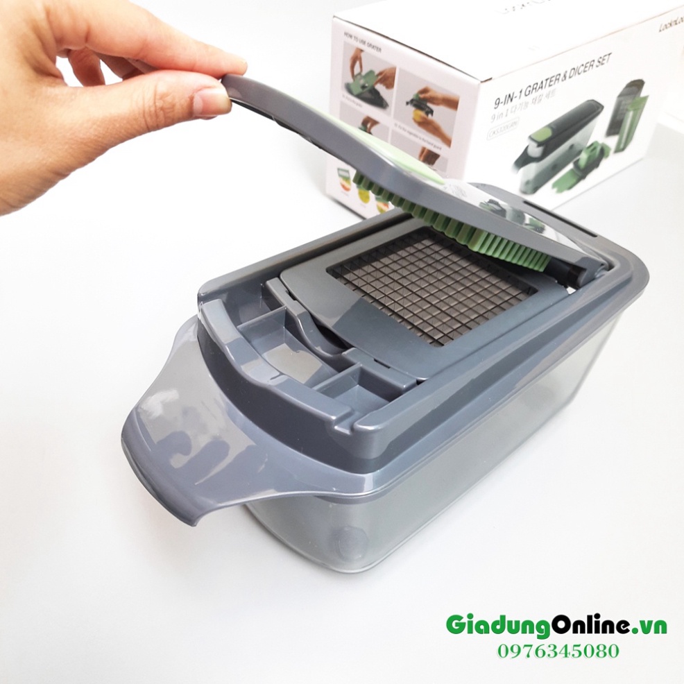 - Chức năng xắt hạt lựu, xắt sợi, thái lát, mài nhuyễn cắt rau củ nhanh chóng nhiều kích cỡ