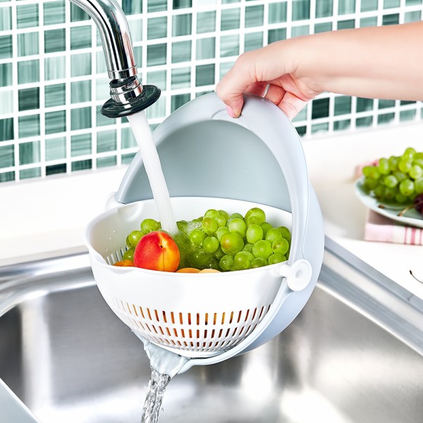 Với thiết kế thông minh, rổ xoay 180 độ giúp dễ dàng làm ráo nước cho rau củ quả hoặc dùng chắt nước khi vo gạo, chắt nước cho mì… chỉ bằng 1 tay, thao tác đơn giản.
