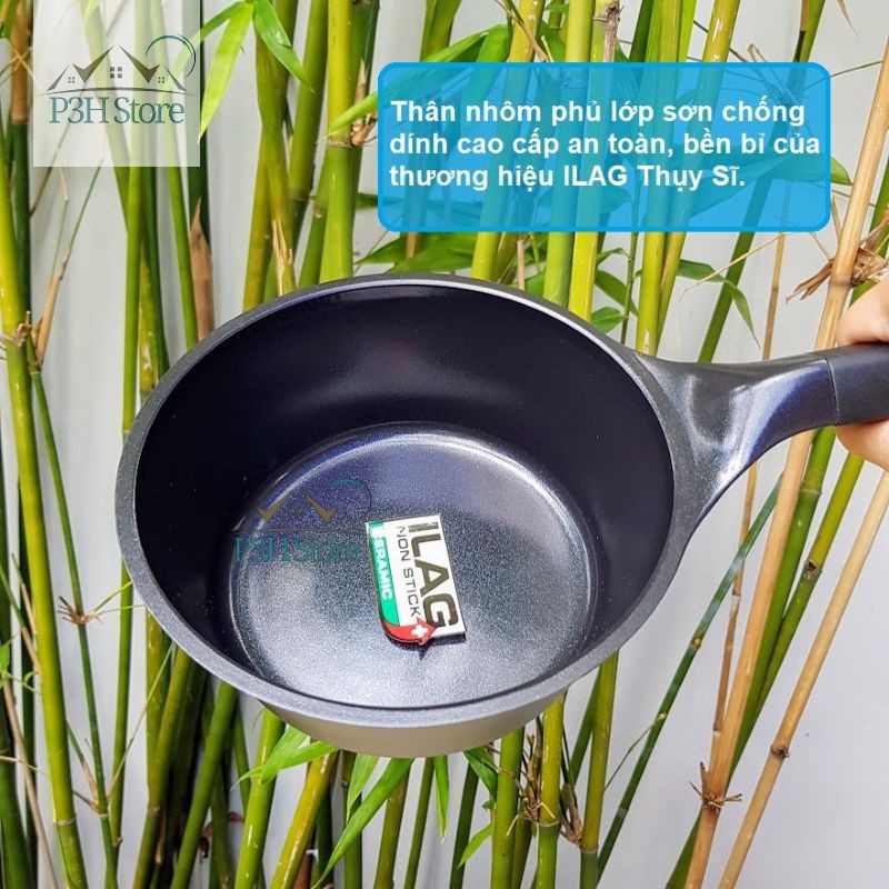 - Thân nhôm phủ lớp sơn chống dính cao cấp an toàn, bền bỉ của thương hiệu ILAG Thụy Sĩ