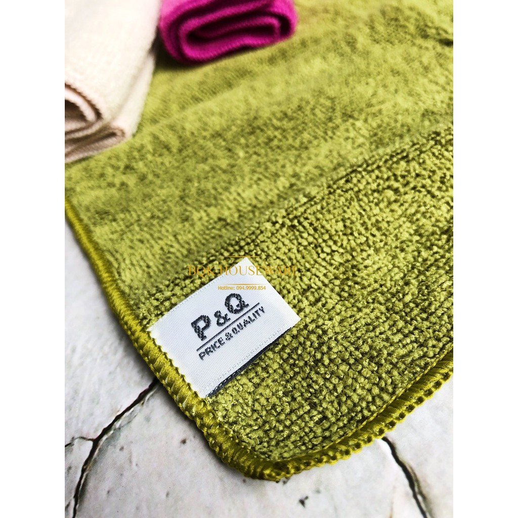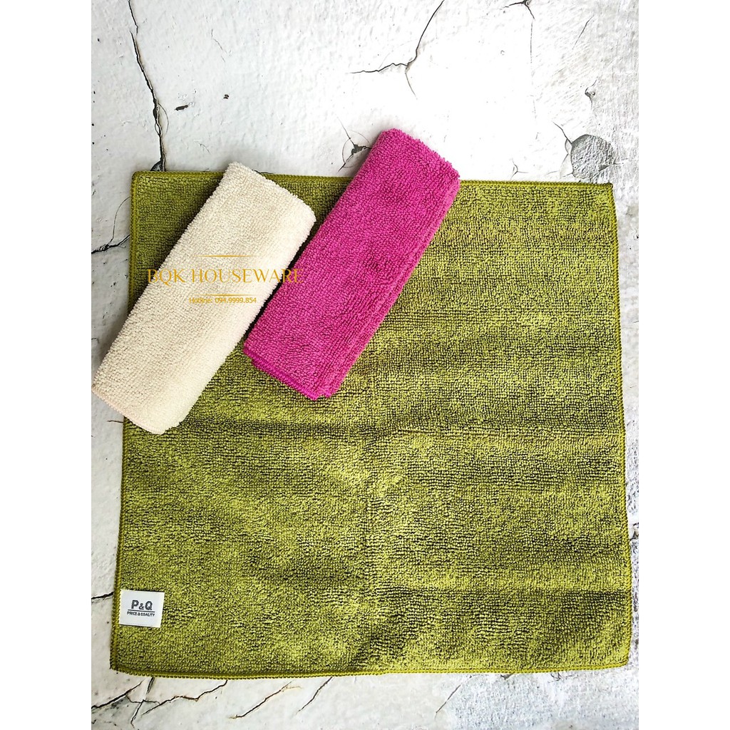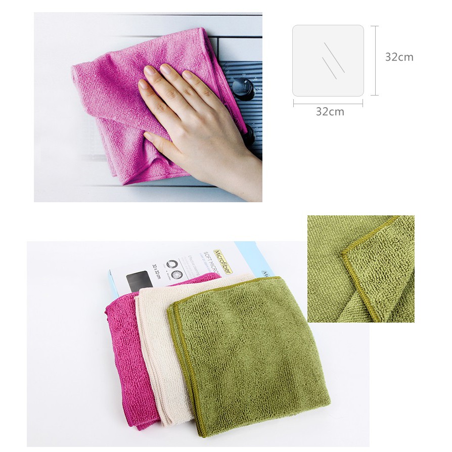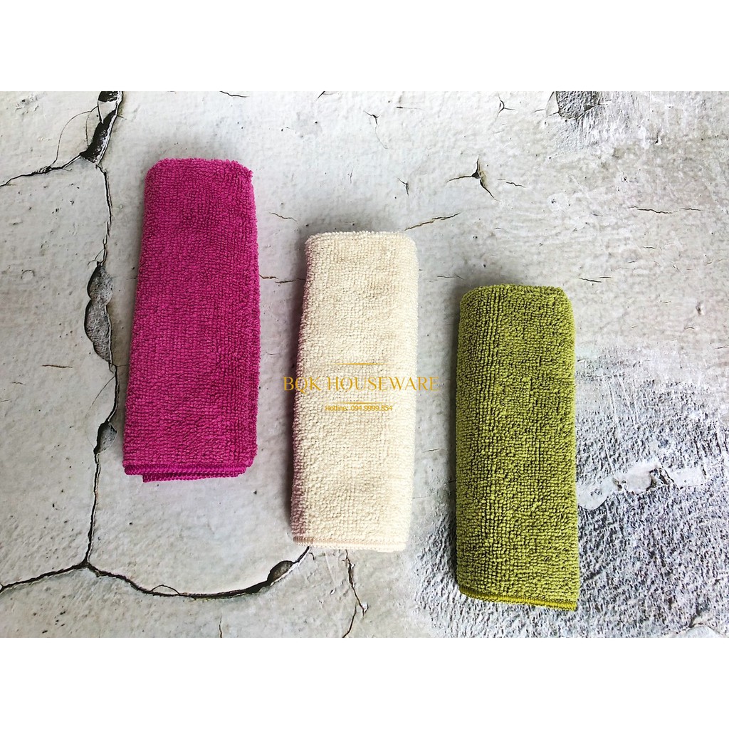 ✅Gồm 3 khăn kích thước 32x32cm: xanh lá, tím và beige✅Chất liệu microfiber