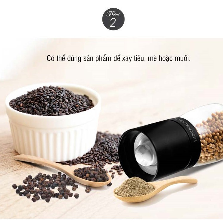 - Vừa là dụng cụ đựng, bảo quản tiêu hạt, vừa giúp xay nhuyễn nhanh chóng, rắc tiêu trực tiếp lên bề mặt món ăn.Đây là cách để thưởng thức hương vị tuyệt vời của hạt tiêu. Vì hạt tiêu xay sẵn thường mất mùi rất nhanh.