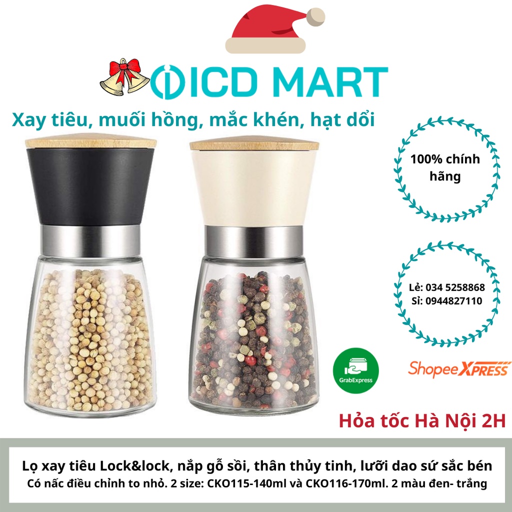 ❤❤❤ DỤNG CỤ XAY TIÊU LOCK&LOCK, thân thủy tinh, nắp gỗ sồi👉CKO116 dung tích 170ml , 2 màu đen và trắng ngà