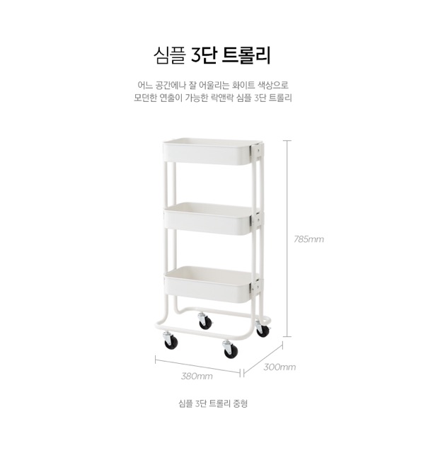[LOCK&LOCK]KỆ ĐỂ ĐỒ 3 TẦNG CÓ XE ĐẨY LOCK&LOCK-INP737