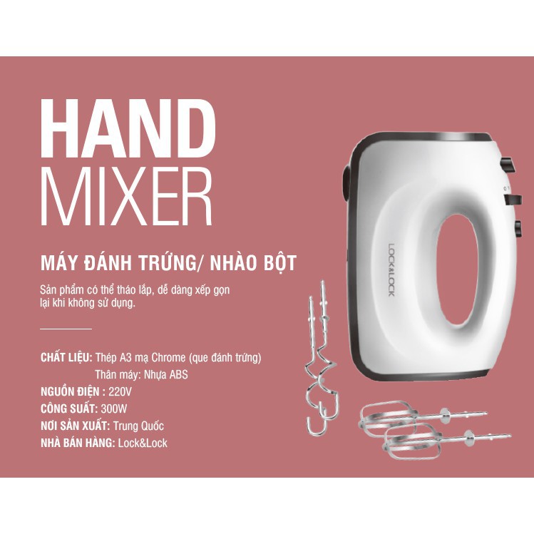 Thiết Bị Điện Gia Dụng > Đồ gia dụng nhà bếp > Dụng cụ nấu đặc biệt > Máy làm bánh Waffle & Crepe || [Lock&Lock] Máy Đánh Trứng Lock&Lock Hand Mixer EJM501 (300W)Còn hàng