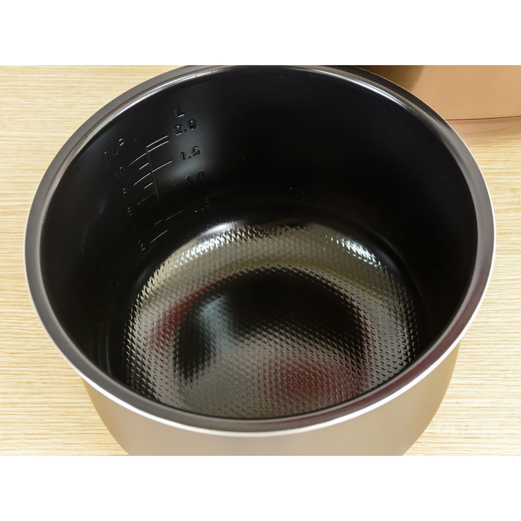 - Lòng nồi làm từ nhôm dày dặn, phủ lớp chống dính cao cấp và bền bỉ, không thôi nhiễm các chất độc hại ở nhiệt độ cao. Lớp chống dính này sẽ giúp hạt cơm chín tơi xốp mà không bị sát xuống đáy nồi gây cháy khét, giúp bạn dễ vệ sinh, lau chùi.
